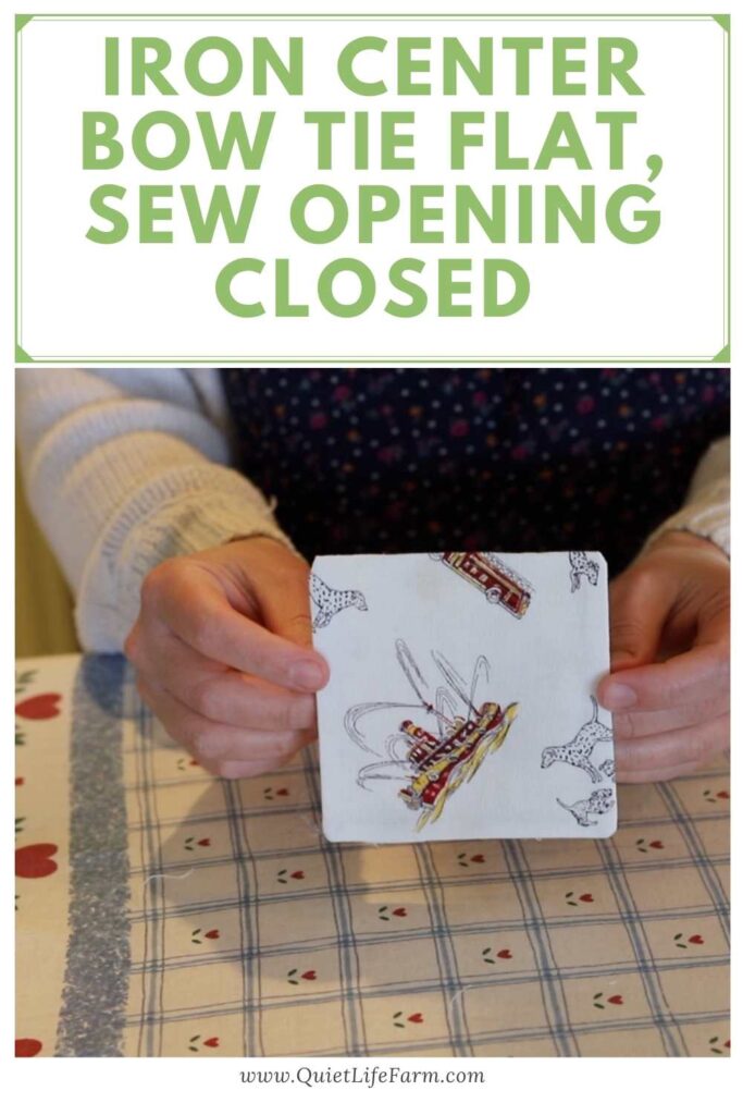 Iron the bowtie flat, and sew the opening of your bowtie closed.