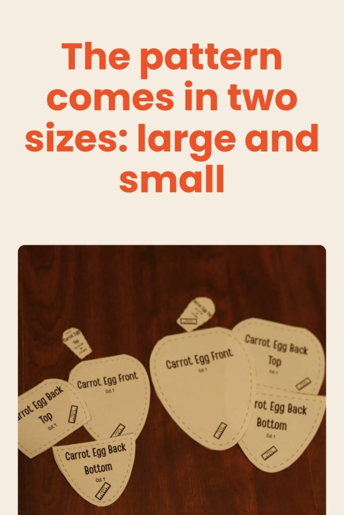 Be sure you use just the “small” size pieces for the smaller carrot, and only the “large” size pattern pieces for the larger carrot! (don’t mix them up! each piece has the size marked on it to help you keep track of what is what!)