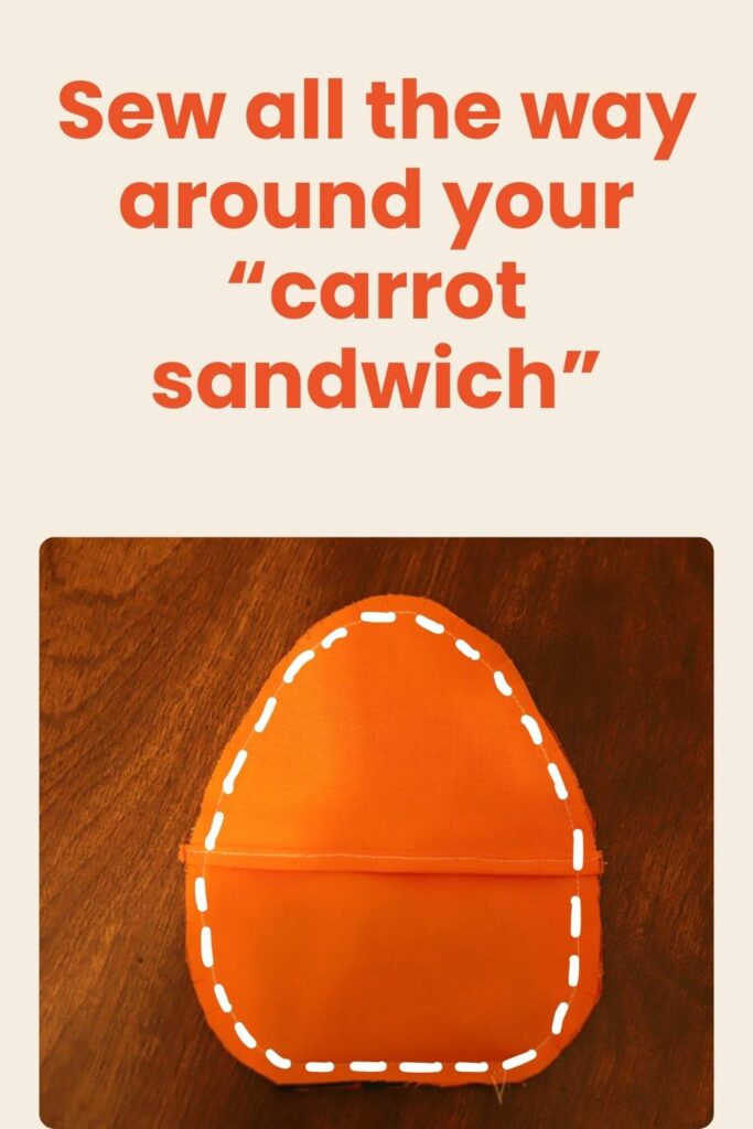 Sew all the way around the edge of your carrot sandwich, with a 1/4″ seam allowance.